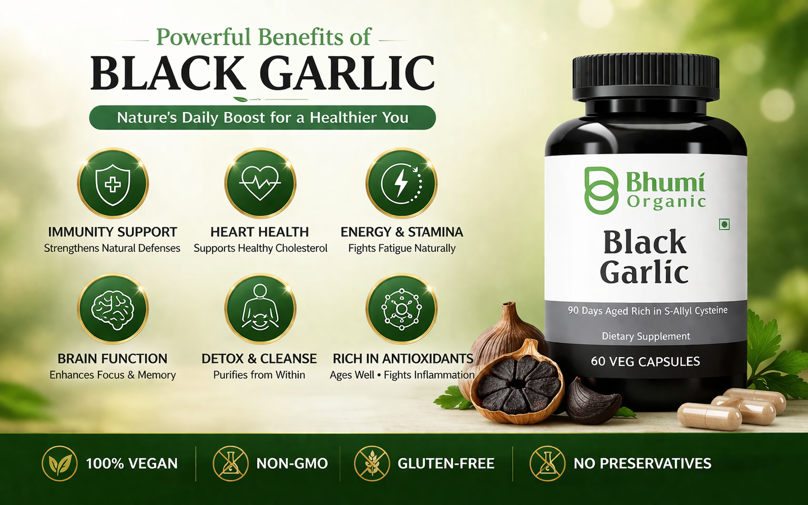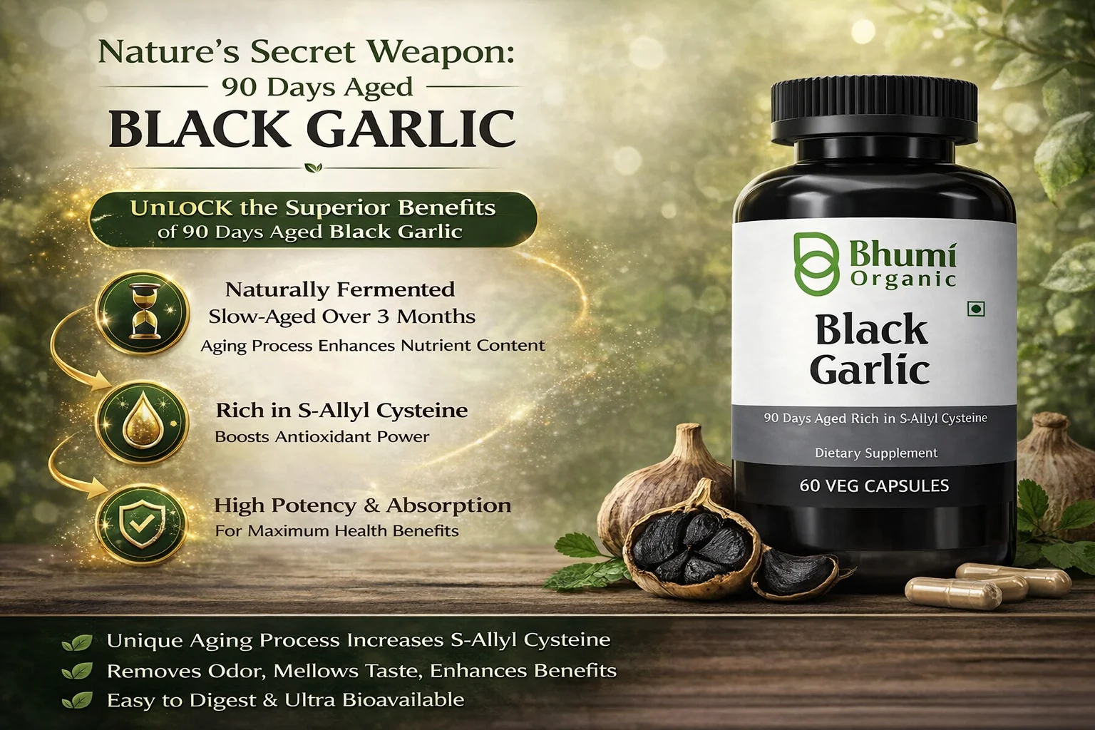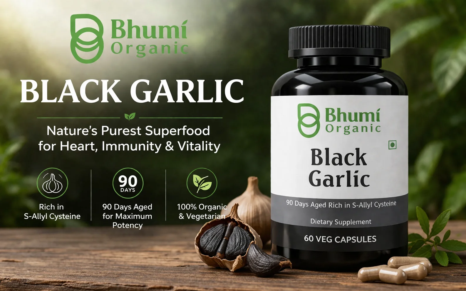 Bhumi Organic Black Garlic Capsules | 500mg ( Pack of 2 )